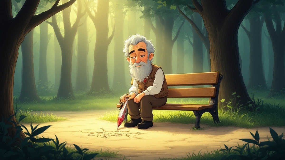 Все рисунки созданы в нейросети МэджикЛайт На скамейке у аллеи сидел маленький старичок с длинной седой бородой. В одной руке он держал зонтик и чертил им на песке какие-то узоры. — Подвиньтесь, — буркнул Павлик и плюхнулся рядом. Старик послушно подвинулся и с любопытством взглянул на раскрасневшееся сердитое лицо мальчика. — Что-то у тебя не так? — тихо спросил он. — Вам-то что? — отрезал Павлик, нахмурившись. — Да ничего мне. Просто видно — ты злишься, кричал, может, с кем-то поссорился? — Ещё бы! — огрызнулся мальчишка. — Я скоро вообще из дома убегу! — Убежишь? И куда же? — Да хоть куда! Из-за этой Ленки! — сжал кулаки Павлик. — Всё свои краски прячет, жадина! А у самой — целая коробка! — Из-за красок убегать — глупо, — улыбнулся старик. — Не только из-за красок! — горячо заговорил Павлик. — Бабушка меня из кухни выгнала — за одну морковку! Прямо тряпкой погнала! Он засопел, борясь с обидой. — Пустяки, — мягко сказал старик. — Сегодня поругают, завтра пожалеют. — Никто меня не жал