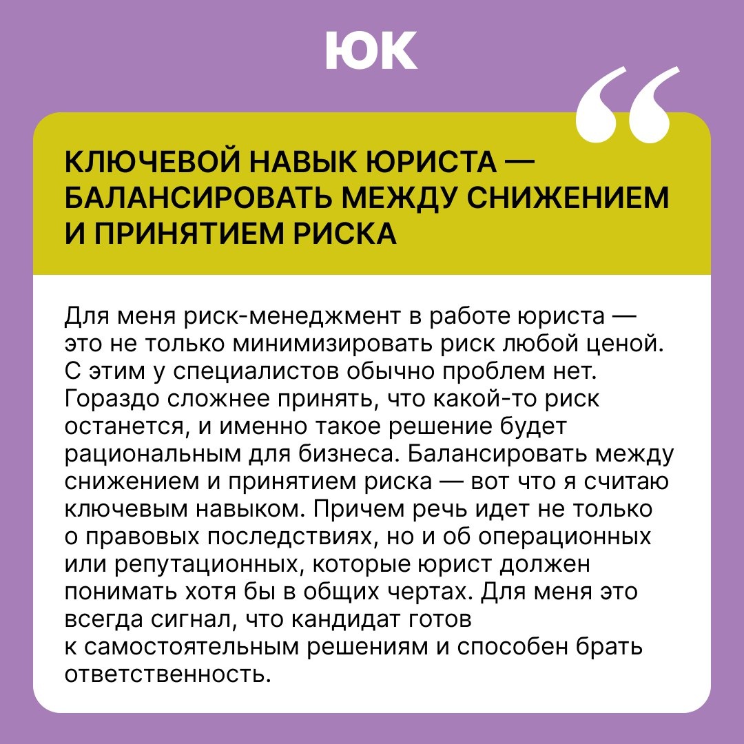 Работодатели поменяли требования к юристам. Пять новых навыков, чтобы остаться в рынке ➡️ Компании передают юрдепам все больше задач из смежных сфер. Юристы теперь отвечают не только за договоры и суды, но и за закупки, GR, комплаенс, взаимодействие с ИИ и бизнесом. Задачи, которые раньше были за пределами юридической функции, теперь входят в ежедневную рутину. Из-за этого меняются и требования: в вакансиях появляются навыки, которые еще несколько лет назад считались необязательными. 📌 Риск-менеджмент и аналитика В вакансиях теперь практически нет требования «юридическая грамотность» — работодатели и так уверены, что вы точно сможете найти нужную статью в кодексе. Акцент теперь на том, умеете ли вы просчитать последствия, которые повлечет то или иное юридическое решение. Нужно просчитать, когда разумное нарушение требований обойдется дешевле, чем их полное соблюдение. Дарина Ляховская, старший юрист «Авито», ожидает, что соискатели на вакансию юриста в их команду умеют находить