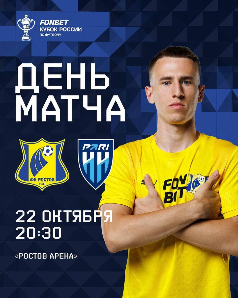 ⚽️Сегодня в 20:30 состоится заключительный тур группового этапа Пути РПЛ FONBET Кубка 🏆 На домашней арене «Ростов» сыграет против «Пари НН»😎