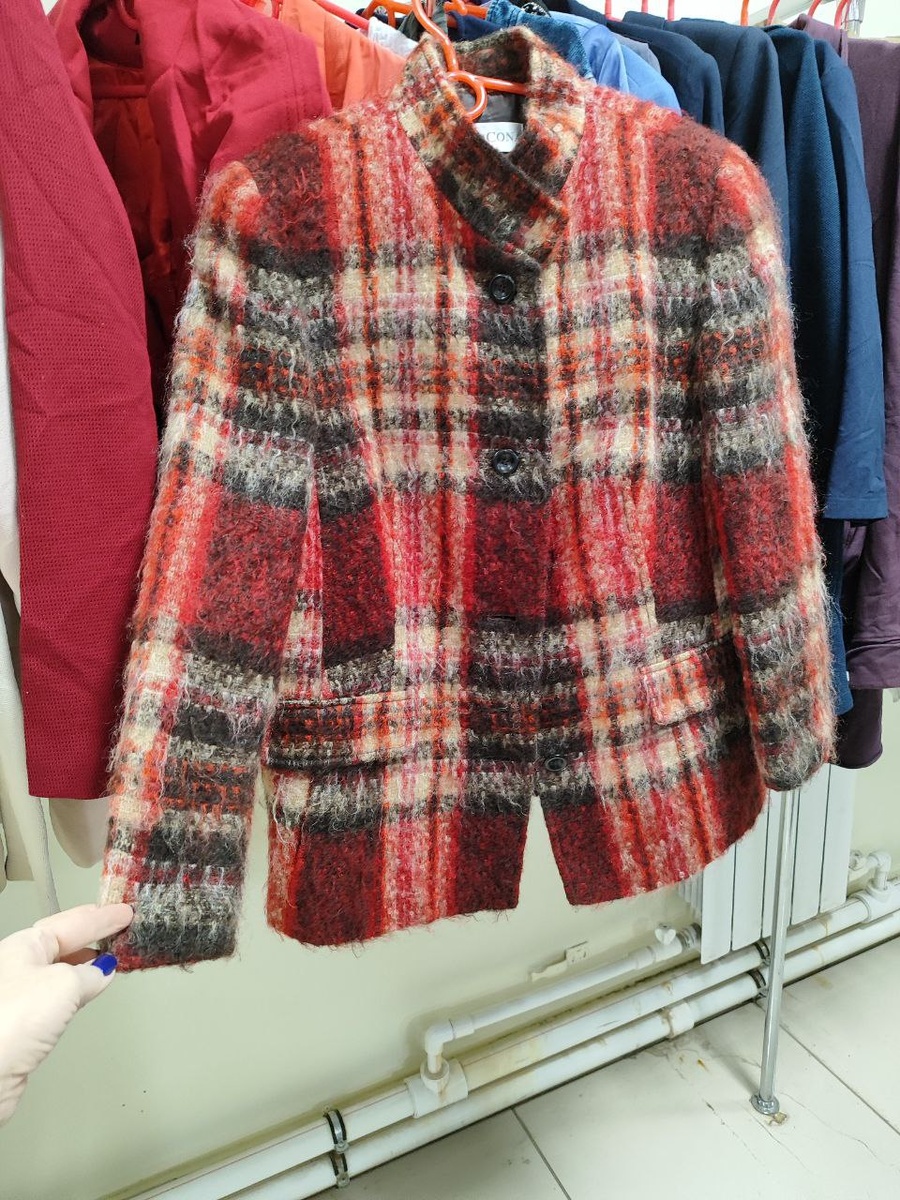 "Marcona", Danefae", "Fuchs & Schmitt". ---------------------- Осень перешла в холодную фазу, и хочется уже укутаться в теплое шерстяное пальто, а то и набросить пуховичок ранним промозглым утром 😊 Отправляемся за теплыми, оригинальными и главное качественными находками в секонд-хенд. Здесь есть из чего выбрать! ---------------------- Атмосферное пальто из мохера и шерсти. Оно дышит теплом и уютом. Крой – классический, ягодная цветовая палитра и крупная клетка тартан – воплощение осеннего настроения! Немецкий бренд премиального качества. Ткань пушистая, мягкая, чуть шероховатая на ощупь. В ней переплелись нити красного, бежевого и глубокого чёрного. Новое состояние и шикарный состав! Такое пальто не требует дополнений – само по себе является акцентом. На фоне других вещей в гардеробе оно выделяется глубиной и фактурой. Размер большой, стоимость 2800р. ---------------------- Следующая невероятная находка – яркий дождевик в широкую полоску. Уникальная вещица (не встречала еще ничего по