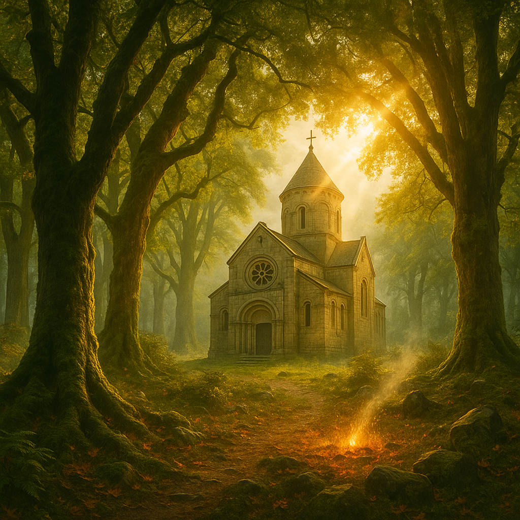 Славянская священная роща была первым храмом человечества, и церковь, пришедшая позже, не уничтожила её полностью — она впитала её, подменив живое — мёртвым камнем.