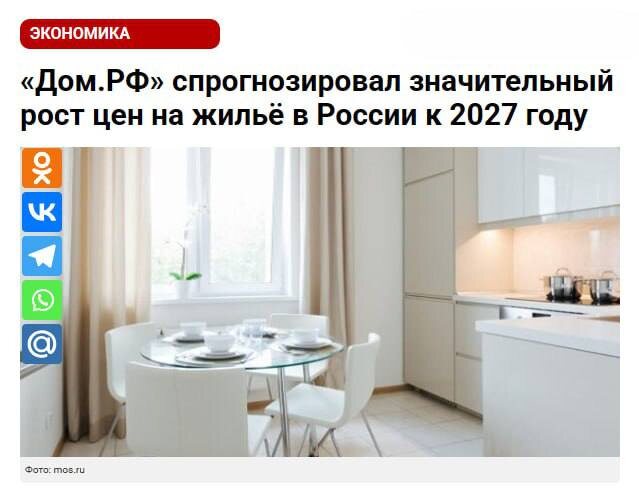 ⚡️В 2027 году жильё может подорожать - прогноз «Дом.РФ