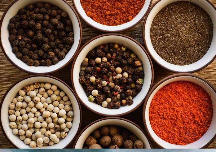 Чёрный перец — широко распространённая и ценная пряность, которую часто недооценивают из-за ошибочного восприятия её чрезмерной остроты. На самом деле под этим названием скрываются четыре вида приправ, получаемых из растения Piper nigrum: Чёрный перец - производят из незрелых плодов, высушенных естественным способом. Белый перец - представляет собой очищенные семена полностью созревших плодов. Зелёный перец - получают из недозрелых ягод с помощью специальной сушки. Розовый перец - также изготавливают из неспелых плодов, используя методы, схожие с производством зелёного перца, иногда применяя маринование. Следует отметить, что в продаже часто встречается розовый перец из перуанского или бразильского растения. Душистый перец - не относится к линейке Piper nigrum — его получают из плодов пименты лекарственной, принадлежащей к другому ботаническому семейству. Жгучесть чёрного перца действительно относительна. За эту характеристику отвечает алкалоид пиперин (в отличие от капсаицина в остром