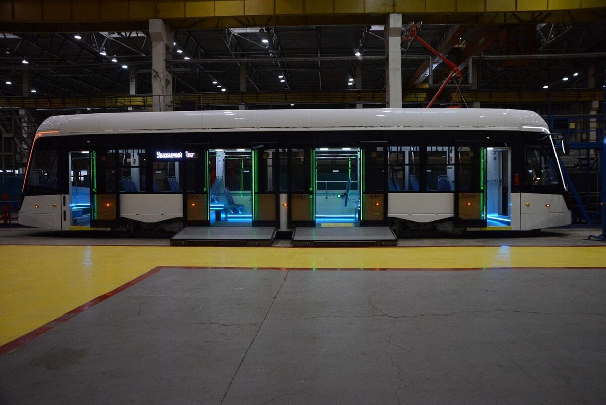 После завершения эксплуатационных испытаний вагон сможет отправиться в серийное производство. Фото: «Уралтрансмаш». Трамвайный вагон 71-415М — это обновленная версия модели 71-415 с максимальной вместимостью до 165 пассажиров, рассказал главный конструктор гражданской продукции завода «Уралтрансмаш» Дмитрий Буньков. «Здесь используется поворотная тележка нового поколения, как в «Достоевском» и «Довлатове», которые успешно эксплуатируются в Санкт-Петербурге более двух лет. Вагон полностью соответствует требованиям программы «Доступная среда». Надеемся, что жители родного Екатеринбурга тоже высоко оценят наш трамвай». Фото: «Уралтрансмаш». Особое внимание в трамвае уделено эмоциональному комфорту: в вагоне есть подсветка, для которой можно в зависимости от времени суток настроить определенный цвет. Например, вечером можно установить успокаивающее освещение с зеленым или голубым тоном. Утром цвета могут быть бодрящими — розовым или красным. Дизайн вагона разработан с учетом современных тр
