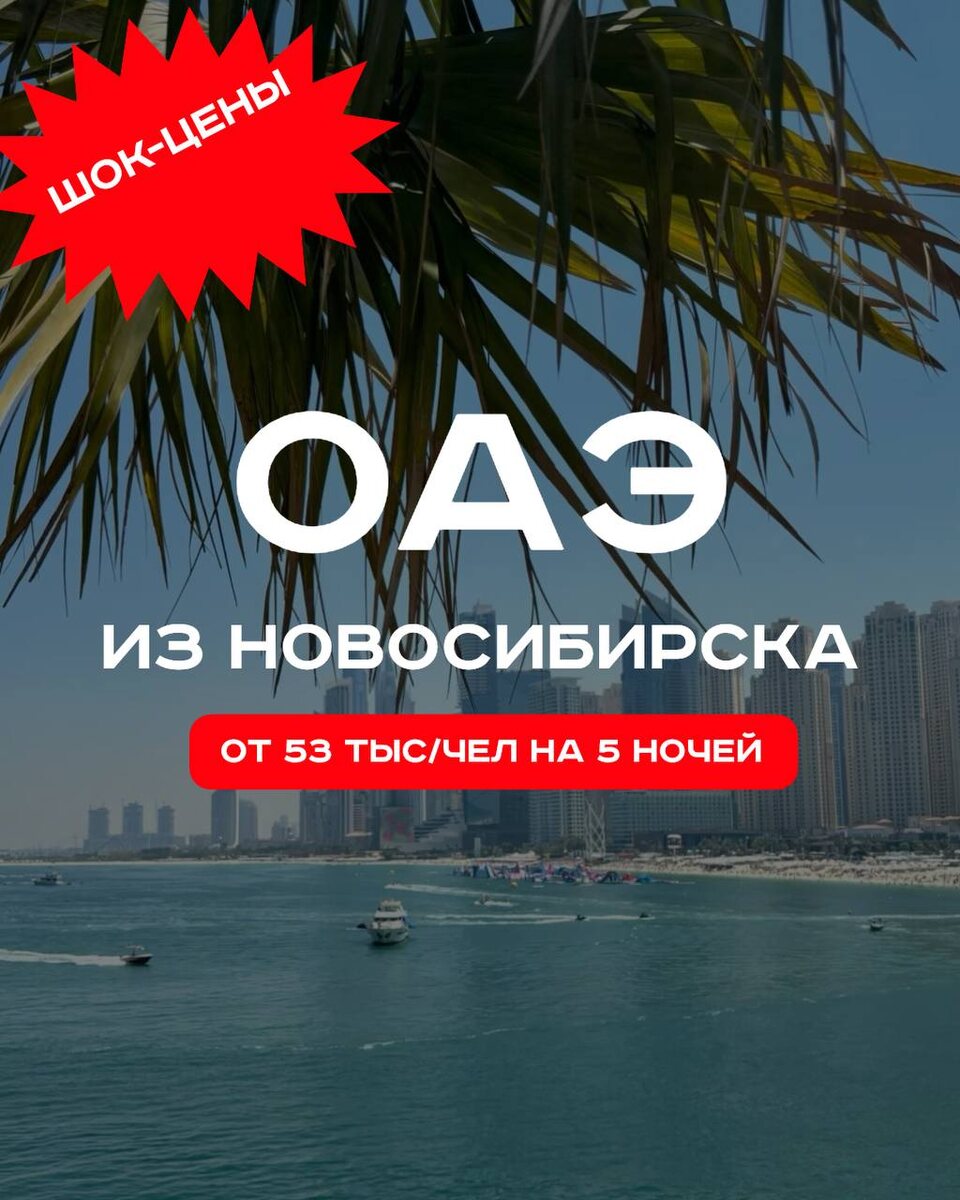 Отличные цены на туры в ОАЭ из Новосибирска. Еще есть время подготовиться и собрать чемоданы - вылет в конце декабря ✈️Новосибирск - ОАЭ, Рас-эль-Хайма 📆23.12 на 5 ночей 🌴Citymax Hotel Ras Al Khaimah 3* 🛏️standard / 2 взр 🔥105 790 RUB ✈️Новосибирск - ОАЭ, Джумейра 📆23.12 на 5 ночей 🌴Ibis Styles Dubai Jumeirah 3* 🛏️ standard / 2 вз 🔥117 727 RUB ✈️Новосибирск - ОАЭ, Аджман 📆23.12 на 5 ночей 🌴Ramada By Wyndham Beach Hotel Ajman 4* 🛏️standard city view / 2 взр 🔥118 159 RUB ✈️Новосибирск - ОАЭ, Шарджа 📆23.12 на 5 ночей 🌴Crystal Plaza Al Majaz (Ex. Tulip Inn Al Khan) 4* 🛏️deluxe / 2 взр 🔥119 506 RUB ✈️Новосибирск - ОАЭ, Шарджа 📆21.12 на 5 ночей 🌴T Holiday International Sharjah 4* 🛏️standard city view / 2 взр 🔥120 322 RUB ✈️Новосибирск - ОАЭ, Шарджа 📆23.12 на 5 ночей 🌴Sharjah Premiere Hotel & Resort 3* 🛏️standard / 2 взр 🔥121 792 RUB ✈️Новосибирск - ОАЭ, Аль-Барша 📆23.12 на 5 ночей 🌴Citymax Hotel Al Barsha At The Mall 3* 🛏️standard / 2 взр 123 436 RUB подроб