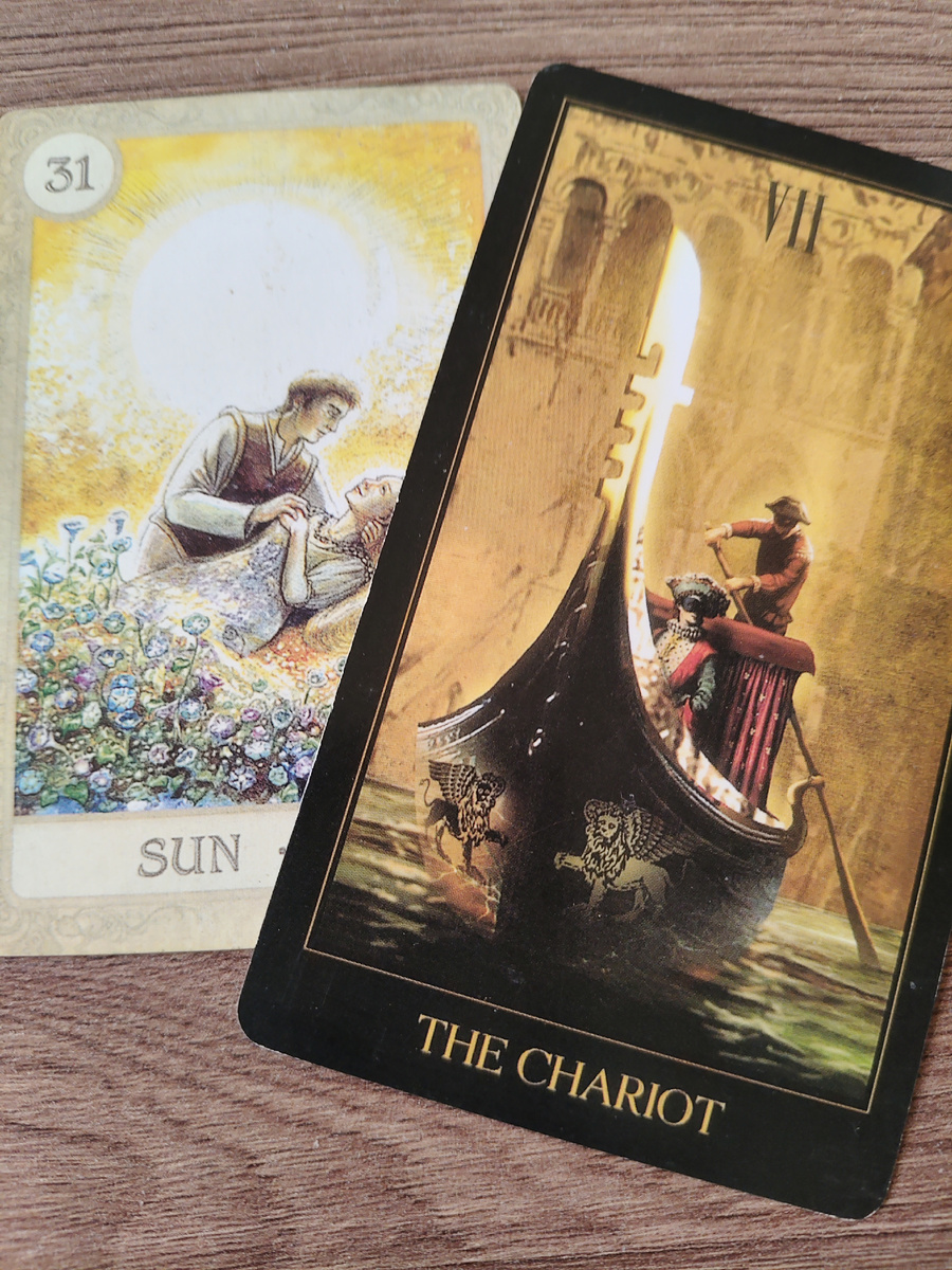 Сочетание карт Солнце в Ленорман и Колесницы в Таро – это мощный дуэт, предвещающий триумф воли и заслуженное признание. Солнце, сияя оптимизмом и жизненной энергией, освещает путь, предопределенный Колесницей – картой напористого движения и целеустремленности. Эта комбинация говорит о том, что препятствия будут преодолены с уверенностью, а поставленные цели достигнуты благодаря концентрации и твердой решимости. Сочетание Солнца Ленорман и Колесницы Таро – это мощный сигнал к действию. Оно говорит о том, что пришло время использовать свой потенциал на полную мощность, проявить инициативу и добиться желаемых результатов. Эта комбинация несет в себе заряд оптимизма, уверенности и решимости, необходимых для преодоления любых препятствий и достижения триумфа. Используйте эту энергию для реализации своих целей и помните – успех уже на горизонте!