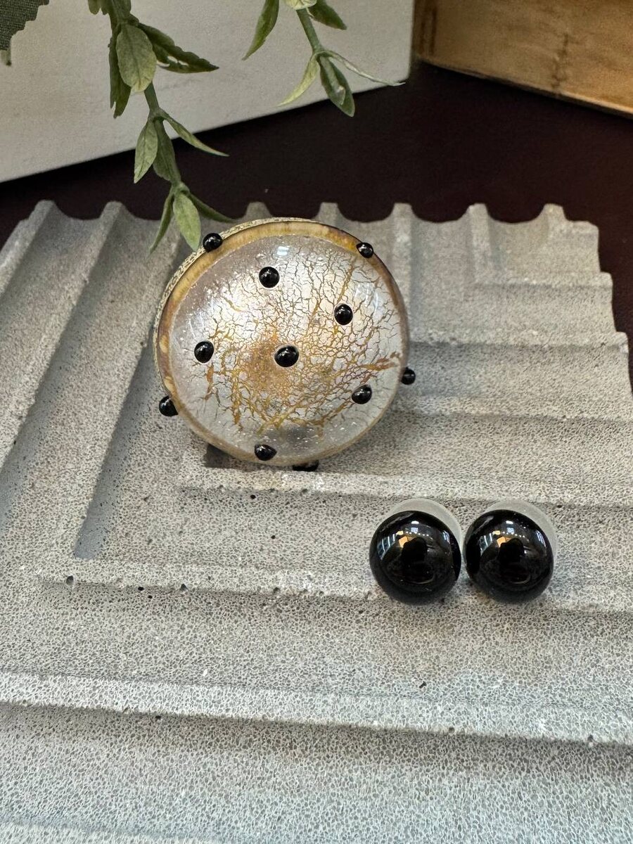 Баланс классики и дерзости в одном комплекте.🌓 Глянцевое стекло придаёт украшениям благородный блеск и ауру эксклюзивности. Такие акценты идеально дополнят total black, белую рубашку с денимом или элегантный костюм.