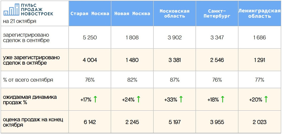 🔼 Старая Москва: уже прошло регистрацию порядка 4 004 сделок по итогам октября, прогноз +17% (6 142 ДДУ за октябрь)
