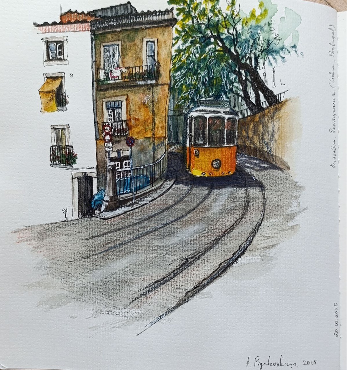 . 190х190 mm paper (Sketchbook), isograph, watercolors, gel pen . Lisboa, Portugal Лиссабон, Португалия. . Как нарисовать осень, не рисуя осень😉 Верно! Нарисуй знаменитый лиссабонский трамвай 28😉 . Давно я не скетчила на одном дыхании) . #art #artwork #artist #Portugal #sketching #watercolors #sketch_daily #streetart #illustration #illustrator #design #gallery #artgallery #town #picture #sketch #sketchbook #художник #искусство #иллюстрация #акварель #sketchoftheday #sketchaday #oldtown #boat #port #street #architecture #архитектура #apigulevskaya_art