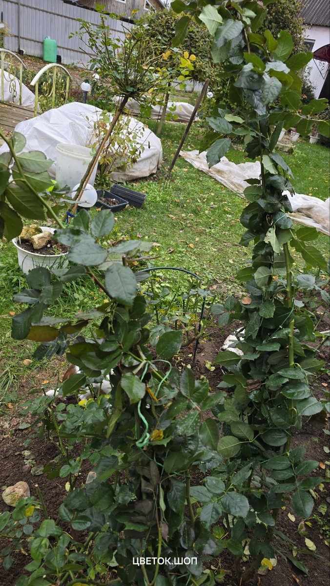 Как выглядят мои розы перед укрытием. Финиш. Листва зимует вместе с розами Спешу закончить с укрытием роз, пока стоят сухие дня Большая часть уже укрыта, осталось совсем немного Хочу Вам показать, в каком виде мои розы уходят под укрытие Это прям финал финал, больше обрезаться и удаляться ничего не будет Единственное что я делаю, это непосредственно перед тем как накинуть спанбонд посыпаю почву в розариях золой, всё, это финиш, далее встречаемся только весной Вся листва которая остаётся на побегах так и уходит зимовать с розами Плетистых и английских это тоже касается, их я просто связываю вместе с листвой и гну Они сейчас довольно большие, шпильки уже их не держат, а вот дуги - прекрасно, они же выступают в качестве каркаса Для укрытия используют спанбонд плотностью 60, в два слоя, вот такой: https://cvetok.shop/ukryivnoj-material Для широких клум специально покупала шириной 4,2 Всё вмещается, очень удобно Ну вот и всё, заканчивается потихоньку розовый сезон и грустно и радостно од