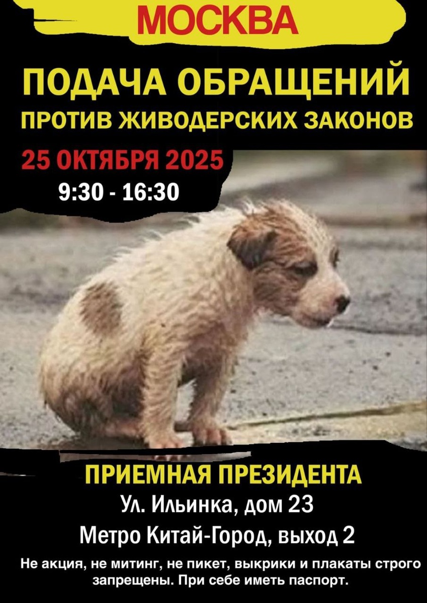 Против запрета кормления животных на улицах. Против лишения нас возможности искать потеряшек 180 дней. Против запрета препятствовать черным отловам.