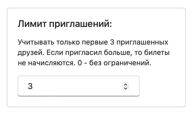 Теперь можно ограничить количество приглашенных друзей, за которое участники получают билеты.