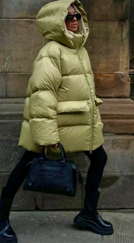 Этой осенью дизайнеры буквально помешались на объемных пуховиках — настолько огромных, что в них женщина превращается в квадрат. Плечи расширены до неприличия, длина до середины бедра, а объем такой, будто вы упаковались в одеяло.