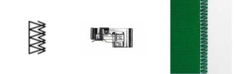 1.2. Используйте прижимную лапку для обметки края. Для средних и тяжелых тканей лучше выбрать лапку с направителем. Совместите край ткани с направителем и прошейте. 1.3. Для осыпающихся, средних тканей используйте прижимную лапку с направителем. Совместите край ткани с направителем и прошейте. 1.4. Для эластичных и трикотажных тканей используйте универсальную прижимную лапку А. Прошейте с небольшим припуском по краю и обрежьте лишнее близко к строчке. 1.5. Для эластичных тканей используйте оверлочную лапку М Преимущества: Совет: