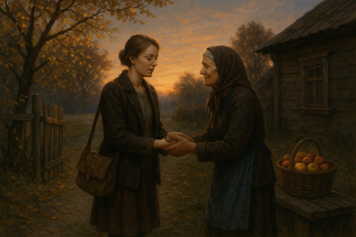 Я почувствовала, как земля уходит из-под ног. Шок накрыл волной: это же не галлюцинация! Я разговаривала с ней, трогала ее руку, видела каждую морщинку, слышала скрип колодца. Спутать с кем-то? Невозможно — в округе никого больше не было. Мы просидели полночи за столом, перебирая варианты: стресс после аварии, усталость от дороги, переутомление на работе. "Может, тень мелькнула, или соседка заехала, — бормотала тетка. — А ты устала, милая, вот и привиделось". Я кивала, но в душе знала: это было реально. Поужинав, я легла спать в своей комнате, но сон пришел только под утро, полный снов о яблоках и грустных улыбках.