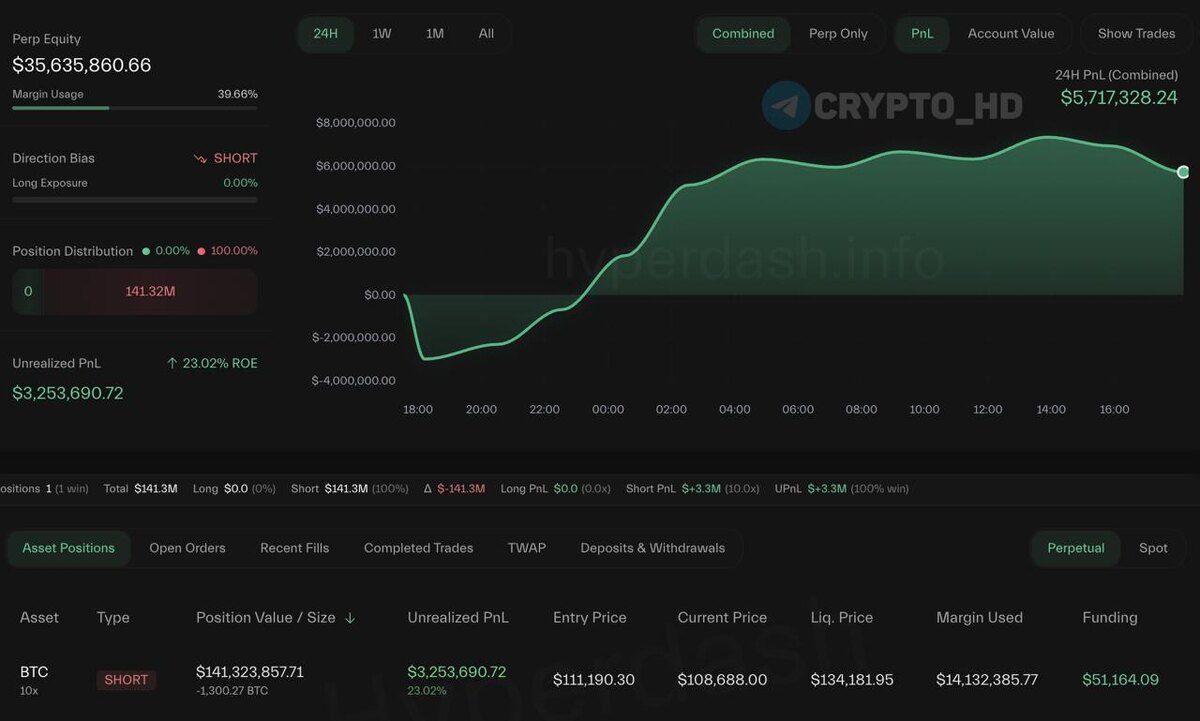 π€ Bitcoin OG ΡΠΎΠΊΡΠ°ΡΠΈΠ» ΡΠ²ΠΎΠΉ ΡΠΎΡΡ ΠΏΠΎ ΠΠΈΡΠΊΠΎΠΈΠ½Ρ Π½Π° 700 BTC ($76m). Π’Π΅ΠΊΡΡΠ°Ρ ΠΏΠΎΠ·ΠΈΡΠΈΡ: β SHORT ΠΏΠΎ BTC Ρ 10Ρ
