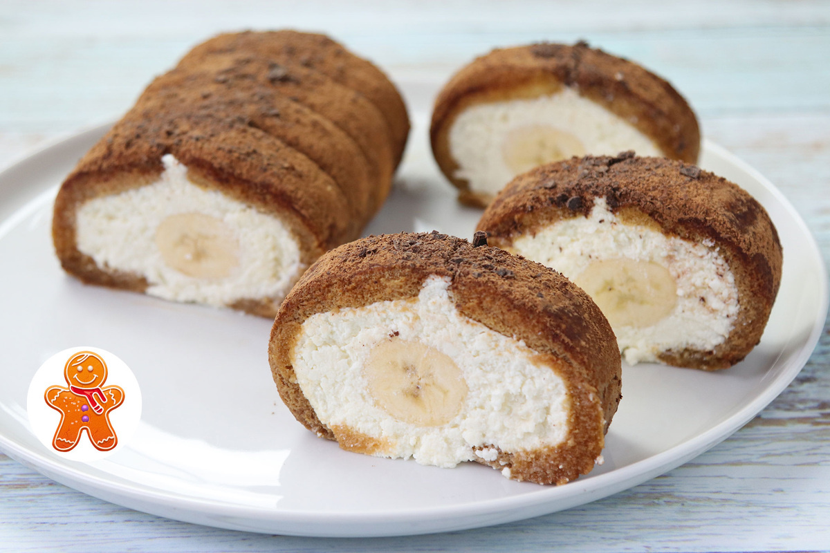 Печенье пропитываем. Опускаем печенье стороной без сахара, с этой стороны оно лучше впитывает пропитку. Выкладываем двумя рядами сахарной стороной вниз. Остатки пропитки распределяем кисточкой. Накрываем пищевой плёнкой и оставляем на 30-40 минут для пропитки. В творог всыпаем половину сахарной пудры и растираем в однородную массу. Можно просто ложкой, если творог мягкий. Если этого будет недостаточно, то творог можно пробить погружным блендером или протереть