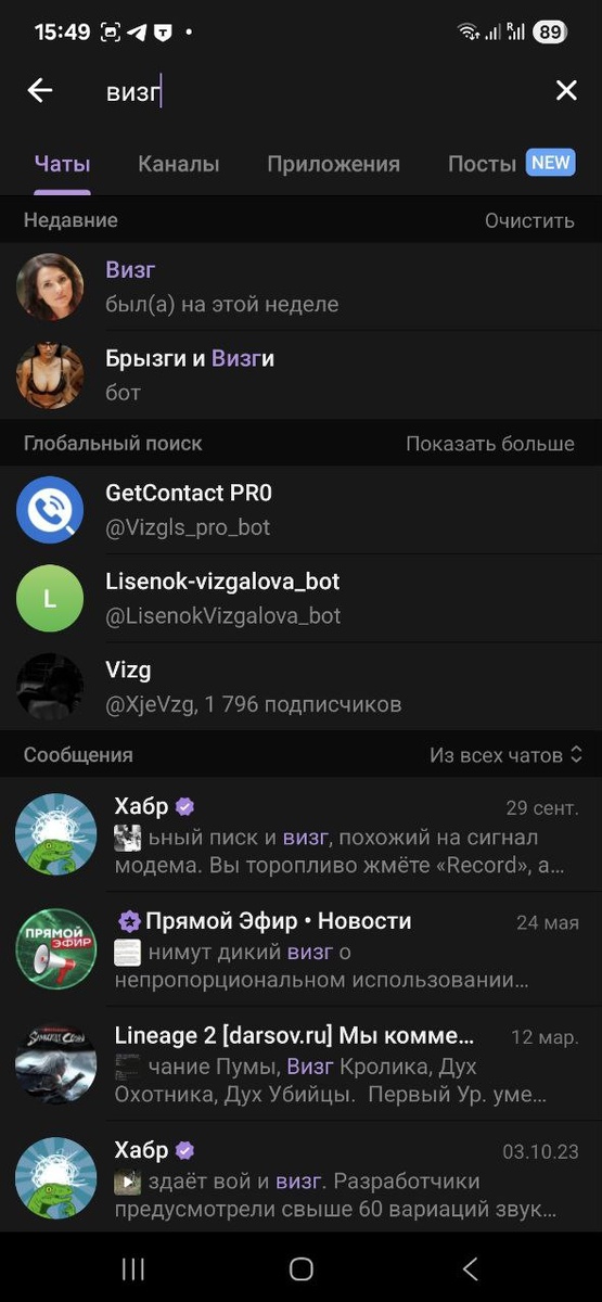 Этот способ работает просто: если у человека не скрыт номер в настройках, ты его найдёшь. Для бизнеса это не про массовый маркетинг, а скорее про точечные B2B связи. Например, когда нужно быстро выйти на партнёра или коллегу, а контактов под рукой нет. Чтобы найти человека в тг по номеру, первое, нужно добавить номер в контакты телефона и назвать его, например Визг. Потом открыть поиск и ввести имя которым обозвали этот контакт, в нашем случае Визг. Далее нажать на чат и начать переписку.