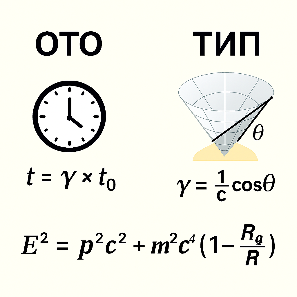 Представьте: 1920-е годы. Физика стоит на пороге революции. С одной стороны - теория Эйнштейна с относительностью времени. С другой - Теория Искривлённого Пространства (ТИП) - мир, где время абсолютно, а все чудеса объясняются геометрией. 📍 **РАЗВИЛКА: ДВА ВЗГЛЯДА НА ТКАНЬ МИРОЗДАНИЯ** **СЦЕНАРИЙ А: ОТНОСИТЕЛЬНОСТЬ ЭЙНШТЕЙНА (ОТО)** - Время - относительное - Замедление: t = γ × t₀ - Пространство-время едины - Гравитация = искривление континуума **СЦЕНАРИЙ Б: ТЕОРИЯ ИСКРИВЛЁННОГО ПРОСТРАНСТВА (ТИП)** - Время - абсолютное - γ = 1/cos(θ) - геометрия пути - Четвёртое измерение - пространственное - Эффекты = проекция 4D-траекторий 🔄 **ВРЕМЯ: ИЛЛЮЗИЯ ИЛИ РЕАЛЬНОСТЬ?** **ОТО: время относительно** - Часы космонавта идут медленнее - Экспериментально подтверждено - Но: доказательство ли это "резиновости"? **ТИП: время едино для Вселенной** - Замедление - кажущийся эффект - Возникает из "угла наклона" траектории - Аналогия: путники идут разными путями - расстояние разное, время одно ✨ **ЕДИНЫЙ