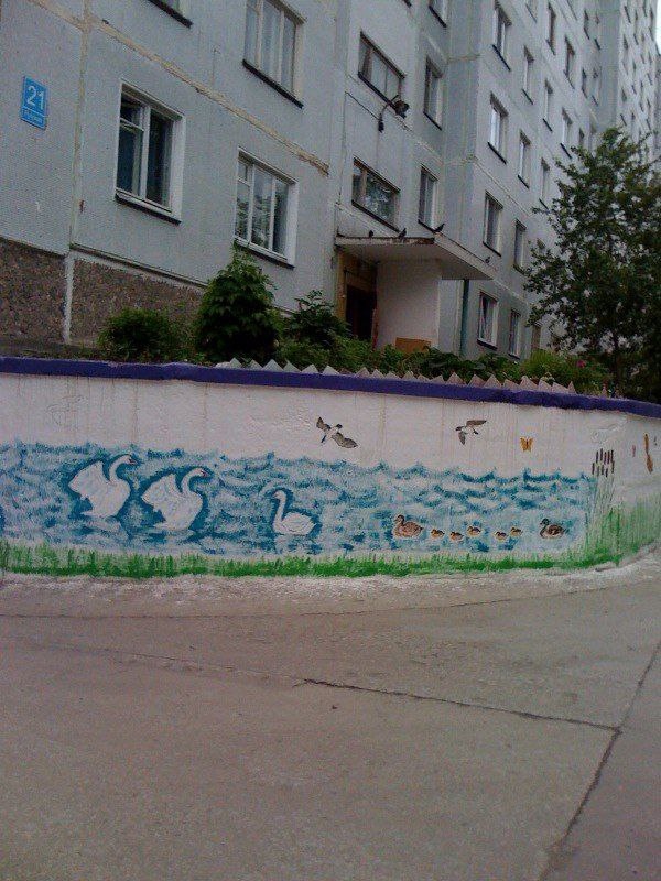 ШЛЮЗ. БЫЛО - СТАЛО. В 2010 году (Фото 1) подпорная стенка у Русской, 21, благодаря неравнодушным жителям, выглядела очень симпатично! А уже к 2016 ноду всё облезло, и остался серый бетон. Очень жаль, что до сих пор (Фото 2) это место выглядит антиэстетично!