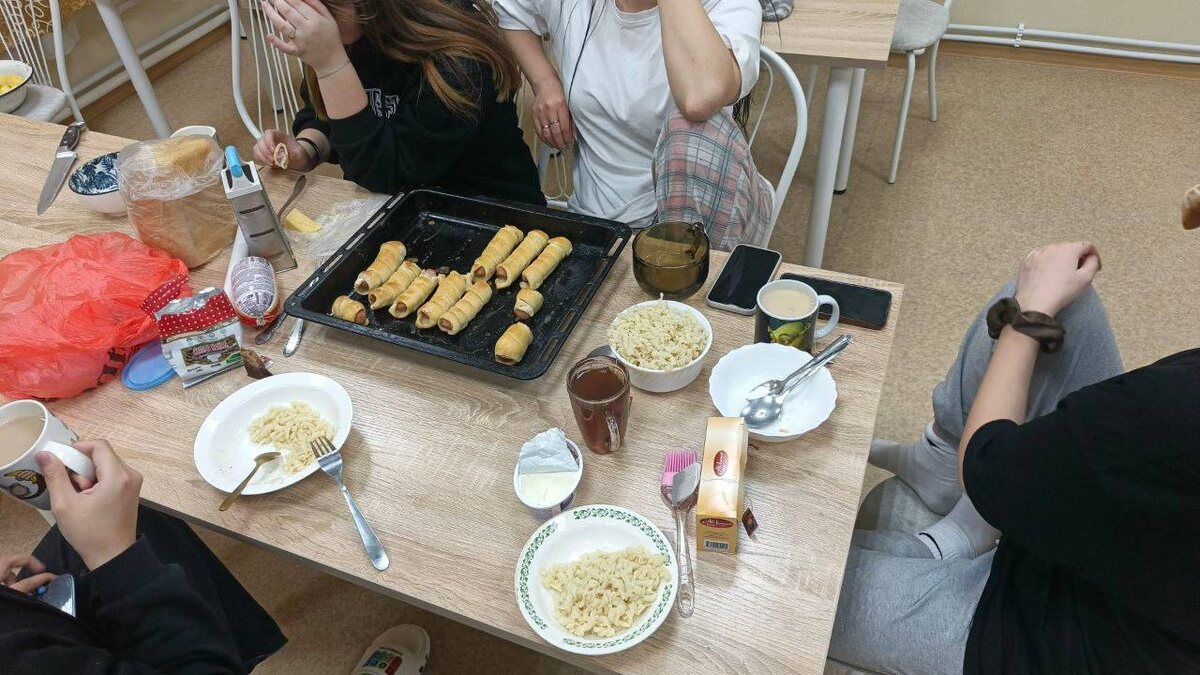 🙋♀️ Студентки, проживающие в общежитии, продемонстрировали настоящие таланты, приготовив вкуснейшие «Сосиски в тесте». 😋 Получилось аппетитно и душевно! Настоящие мастерицы кухни!