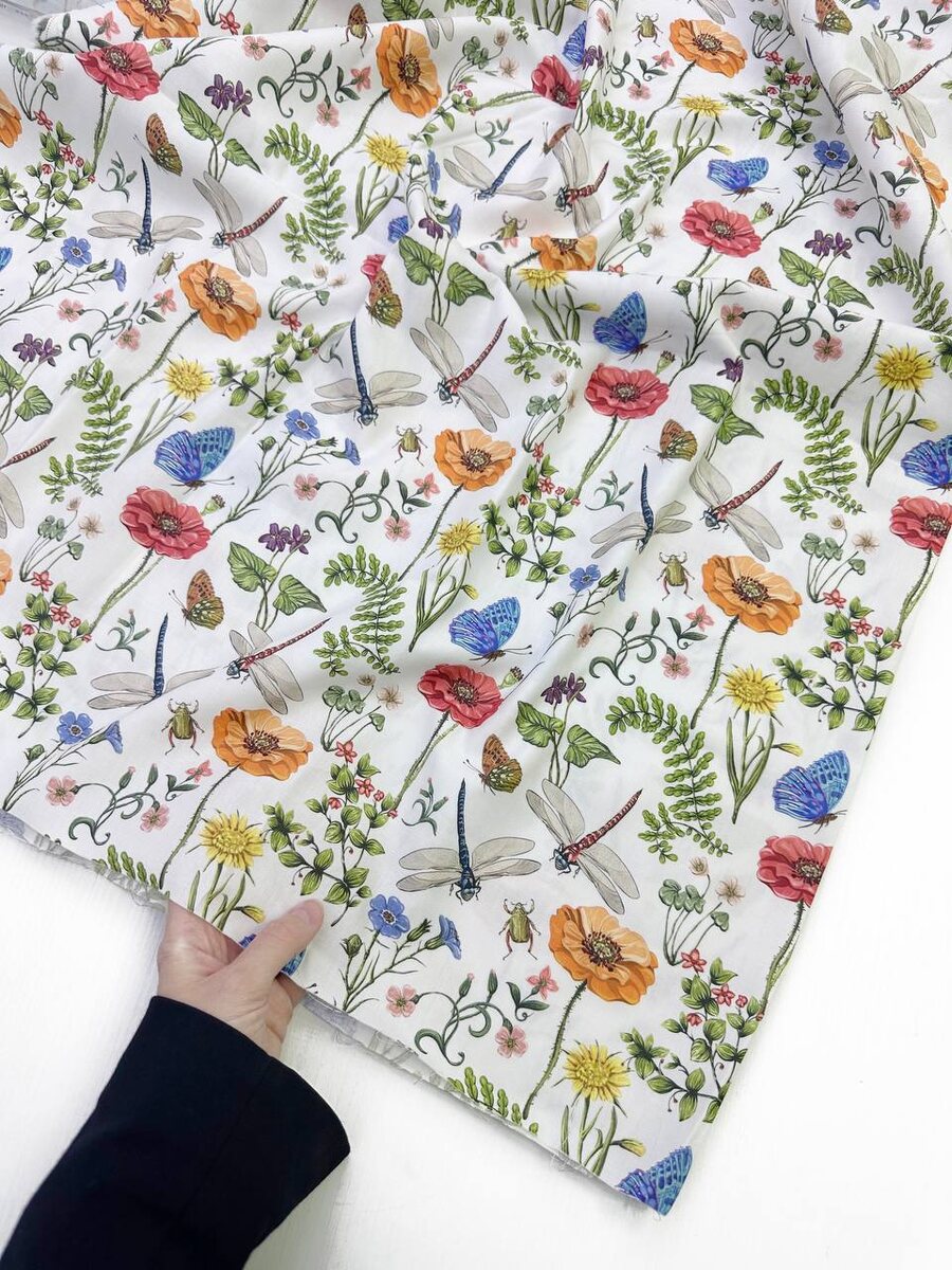 Новинка!!! Хлопок с цветами и стрекозами🌸 Art. 13181 Состав: 100% хлопок Плотность: 130 гр/м2 Ширина: 140 см 1420₽/ метр Для заказа пишите в Whatsapp нашему менеджеру +7-965-317-35-51👩💻