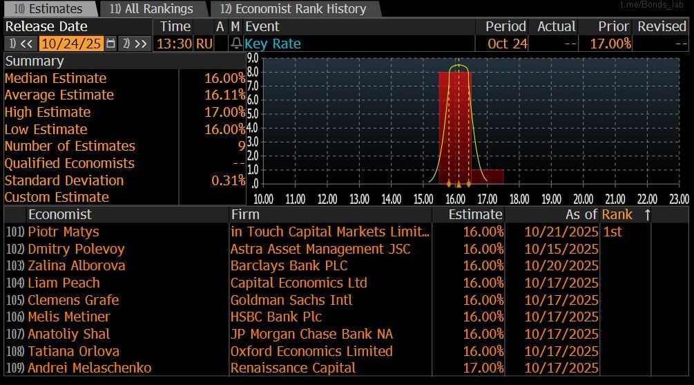 ❗️ЦБ РФ снизит ставку на 1% до 16% на заседании в пятницу — аналитики, опрос BBG