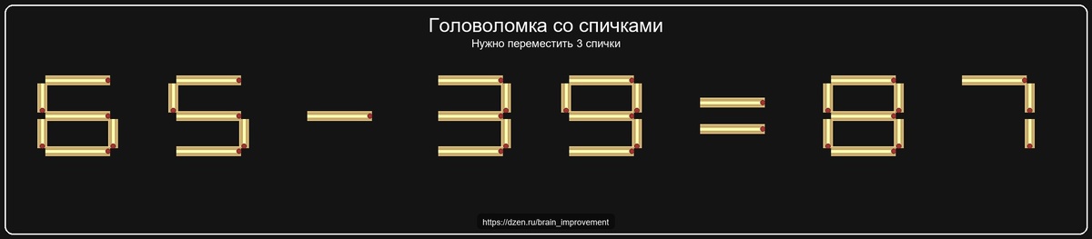 Перед тобой интересная спичечная головоломка! 🔥 Нужно переместить всего 3 спички, чтобы равенство стало верным! 💡