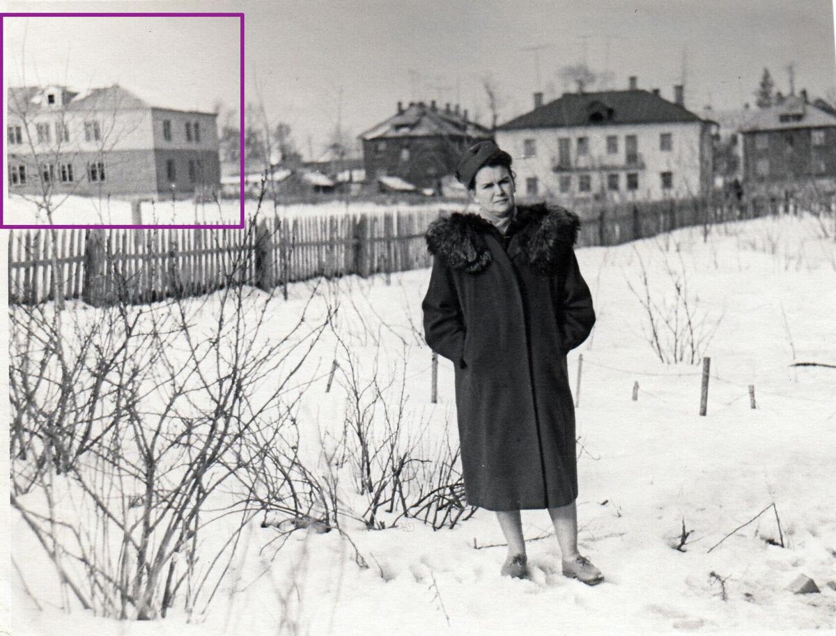 Фото из архива Евгении Курковой снято от дома №3, в те годы эти номера были у МИСовских домов. На снимке видно "стандартные" дома, дом №40 и недостроенный еще дом №58, который в Дубровицах до сих пор называет Папаевским или "Папаев-дом".