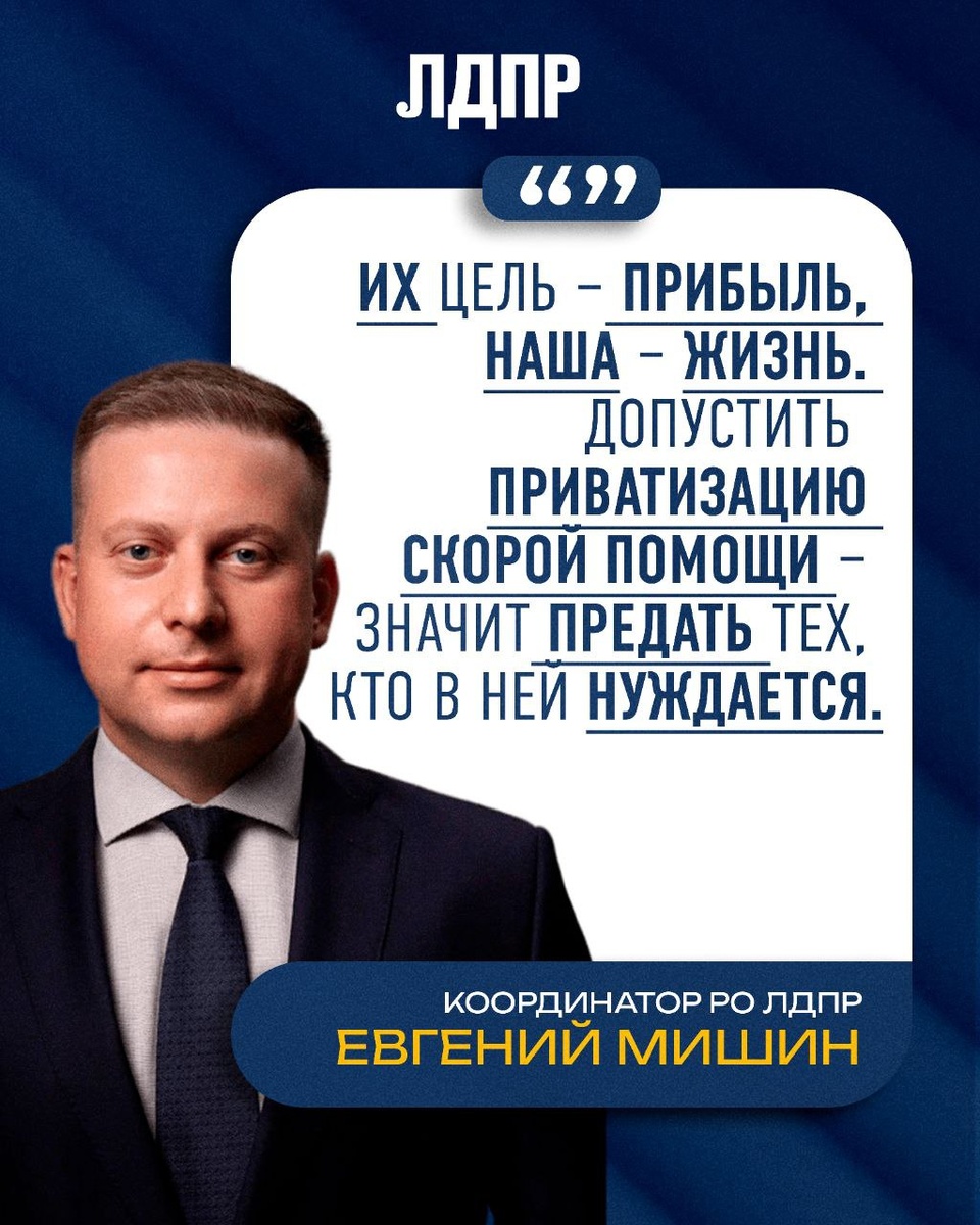 Руки прочь от «скорой помощи»! 🚑 ЛДПР против аутсорсинга «скорой» в Калининграде. Передавать автопарк «скорой помощи» частникам — опасно для жизни и здоровья людей! Об этом губернатору Алексею Беспрозванных заявил руководитель фракции ЛДПР в Заксобрании Евгений Мишин. Почему мы считаем это плохой идеей: ❌ В других регионах такой эксперимент провалился (Самара, Череповец). ❌ 187 из 200 водителей калининградской «скорой» — против! ❌ Водитель «скорой» — это полноценный член медбригады, а не просто «таксист». Мы требуем: ✅Отменить решение о закупке услуг у частников. ✅Сохранить государственную модель «скорой помощи». ✅Гарантировать права всех медработников. Поддержите позицию ЛДПР — делитесь этим постом! Пусть власть услышит голос людей и профессионалов.