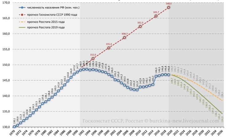 Рисунок 1 – Прогноз по численности населения РФ до 2036г