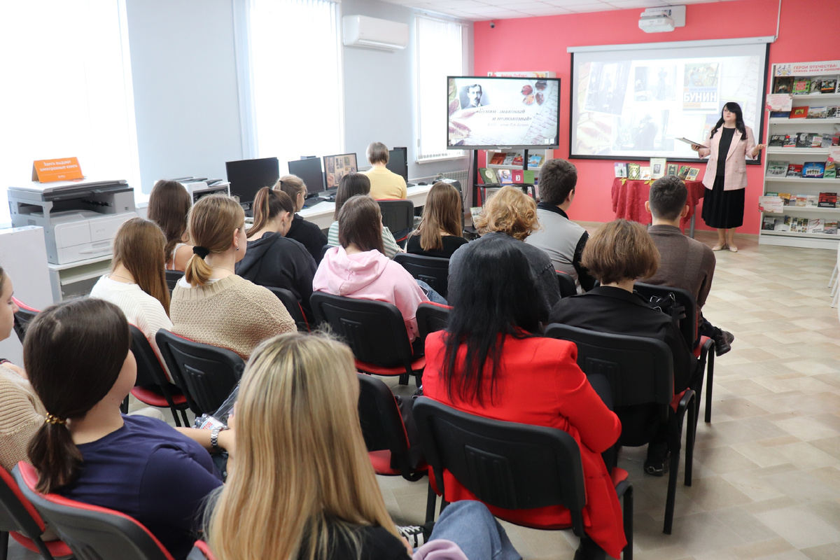 22 октября для студентов Саранского техникума сферы услуг и промышленных технологий в Центральной городской библиотеке прошел вечер-портрет «Бунин: знакомый и незнакомый». Мероприятие было приурочено к 155-летию со дня рождения Ивана Алексеевича Бунина — выдающегося писателя и поэта, первого русского лауреата Нобелевской премии по литературе. Мероприятие позволило по-новому взглянуть на творчество Ивана Бунина: окунуться в атмосферу его прозы и поэзии, восхититься красотой русского языка, открыть новые грани творчества классика и узнать интересные факты из его жизни. Обзор книжной выставки «ЛИШЬ СЛОВУ ЖИЗНЬ ДАНА…» раскрыл многообразие бунинского творчества, показав, как мастерски писатель передавал красоту природы, человеческие чувства и тончайшие оттенки души. #ЦБС_Саранск #БиблиотекаНовогоПоколения #модельнаябиблиотека #Библиогород #Центральная_городская_библиотека #ведисебякультурно #ведисебявбиблиотеку #пушкинскаякарта #МодельныеБиблиотекиМордовии #Бунин #вечер_портрет #встреча #но