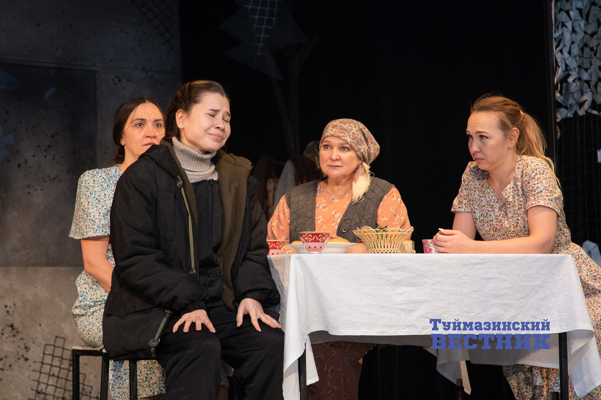 Премьера спектакля современного драматурга из Луганска Светланы Тишкиной состоялась на сцене Туймазинского татарского драмтеатра. Полуразрушенный дом с печкой-буржуйкой, закрытые ставнями окна. А в центре комнаты под вой сирен беседуют женщины – представительницы трех поколений. Такой зрители увидели театральную сцену Туймазинского драмтеатра на премьере спектакля «Женщины» по пьесе драматурга из Луганска Светланы Тишкиной. Казалось, речь идет о событиях Великой Отечественной войны. Но это не так. Артисты рассказали о наших современницах – женщинах Донбасса, на долю которых выпали тяжелейшие испытания. Спасаясь от артобстрелов в подвалах, они продолжают жить в своих домах и вместе с детьми помогают воюющим за освобождение мужчинам. Для 60-летней героини спектакля Груни война стала семейной трагедией. Ее супруг погиб, защищая Донбасс. Старшая дочь Алена сбежала за границу и на протяжении десяти лет от нее нет вестей. Младшая – Даша выучилась на врача и теперь сутками дежурит в больнице,
