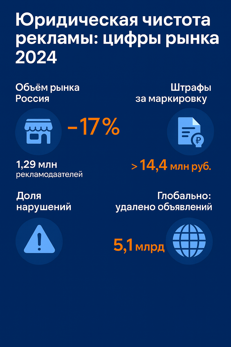 Но в 80% случаев виноват не алгоритм, а формулировка. Слова «лечим», «гарантируем», «доход от» или «инвестиции без риска» автоматически попадают под закон о рекламе. Даже если вы просто делитесь опытом. Реклама перестала быть «серой зоной». Любая формулировка сегодня = ответственность В России регуляторы тоже активны: по итогам 2024 года доля неэтичной рекламы официально оценивалась примерно в 1,16% всех проверенных рекламных размещений - и число претензий выросло относительно предыдущего года. При этом в 2024–2025 годах на платформенном уровне происходили изменения модерации и прозрачности, поэтому цифры по удалённым материалам и по областям нарушений меняются и