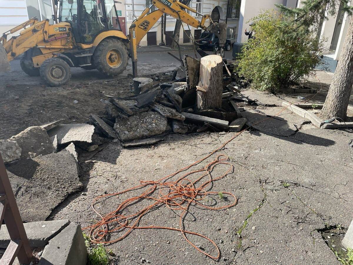 Переулок Саперный-ул. Ермолова. 22.10.2025 г. По словам строителей, якобы было с наклоном дерево! На фото видно, с небольшим наклоном... На моих фото 2023 года смотрите. Ель посажена в 1972 году. 53 года. Ниже смотрите фото от Администрации города. Может потом увеличился наклон. Жаль конечно красавицу! Есть небольшое искривление, но по-моему оно не опасное! Хотелось бы знать, это все по закону или по хотению коммерсантов? Делают видимо автостоянку? А это фото от Администрации Кисловодска. Может произошел наклон через 2 года еще на больший угол, но вот на видео действительно наклон большой. Корневая система у елей видимо не очень сильная, потому как на Цандера были падения елей при сильном ветре! А ниже улица Широкая. Смотрите спил деревьев возле Сбера. Октябрь-2025 г. ‼️‼️‼️⛔️⛔️⛔️ Галина С, [20 окт. 2025 в 16:50] "Доброго времени суток, к моему обращению, Вы написали, что будете разбираться, никто не приехал, не заактировал, что 2 дерева было спилено под корень, 3 дерева «крон