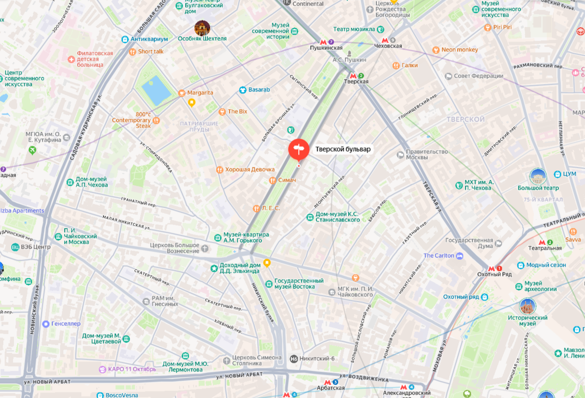 Маршрут: Тверской бульвар → Тверская улица → Пушкинская площадь Представь себя дворянином XIX века. Начни прогулку с Тверского бульвара – первого в Москве. Липы, лавочки, памятники. Выходи на Тверскую – главную улицу города. Она не всегда была такой широкой, многие дома передвинули вглубь в советское время! Постарайся разглядеть за современными фасадами старинные особняки. Закончи на Пушкинской площади у памятника поэту. Это место силы, здесь всегда кто-то встречается, спорит и просто сидит на ступеньках фонтана.