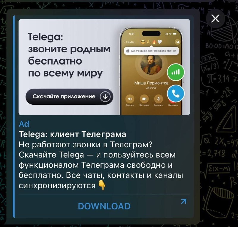 Компания Telega, аффилированная с ВК, полностью скопировала функционал и дизайн Telegram и начала размещать рекламу в этом мессенджере.