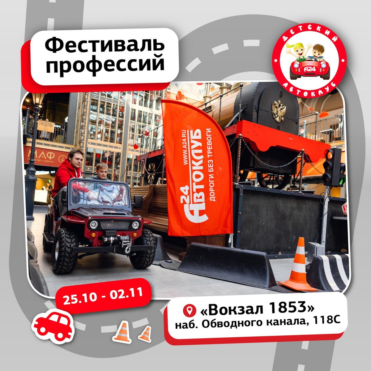 Кем станет ваш ребёнок на Фестивале профессий? С 25.10 по 02.11 приходите на Vokzal 1853. Ваши дети попробуют себя в разных ролях: от художника и актёра до программиста и спортсмена. А на площадке Детского Автоклуба ребята сядут за руль миниавтомобиля и узнают, как вести себя на дорогах. Выбирайте «профессиональные маршруты» вместе с вашими детьми уже сейчас! Будет круто! 💙 #ДетскийАвтоклуб #Спб #дети #авто #кстати