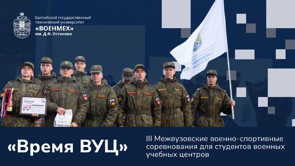 11 октября 2025 года сборная команда ВУЦ нашего университета приняла участие в III Межвузовских военно-спортивных соревнованиях «Время ВУЦ» для студентов военных учебных центров при университетах г. Санкт-Петербурга. Соревнования проходили на базе отдыха в Выборгском районе Ленинградской области. Соревнования проводил Санкт-Петербургский государственный университет телекоммуникаций им. проф. М.А. Бонч-Бруевича при поддержке Федерального агентства по делам молодежи (Росмолодежь). Всего в мероприятии участвовали 10 команд.