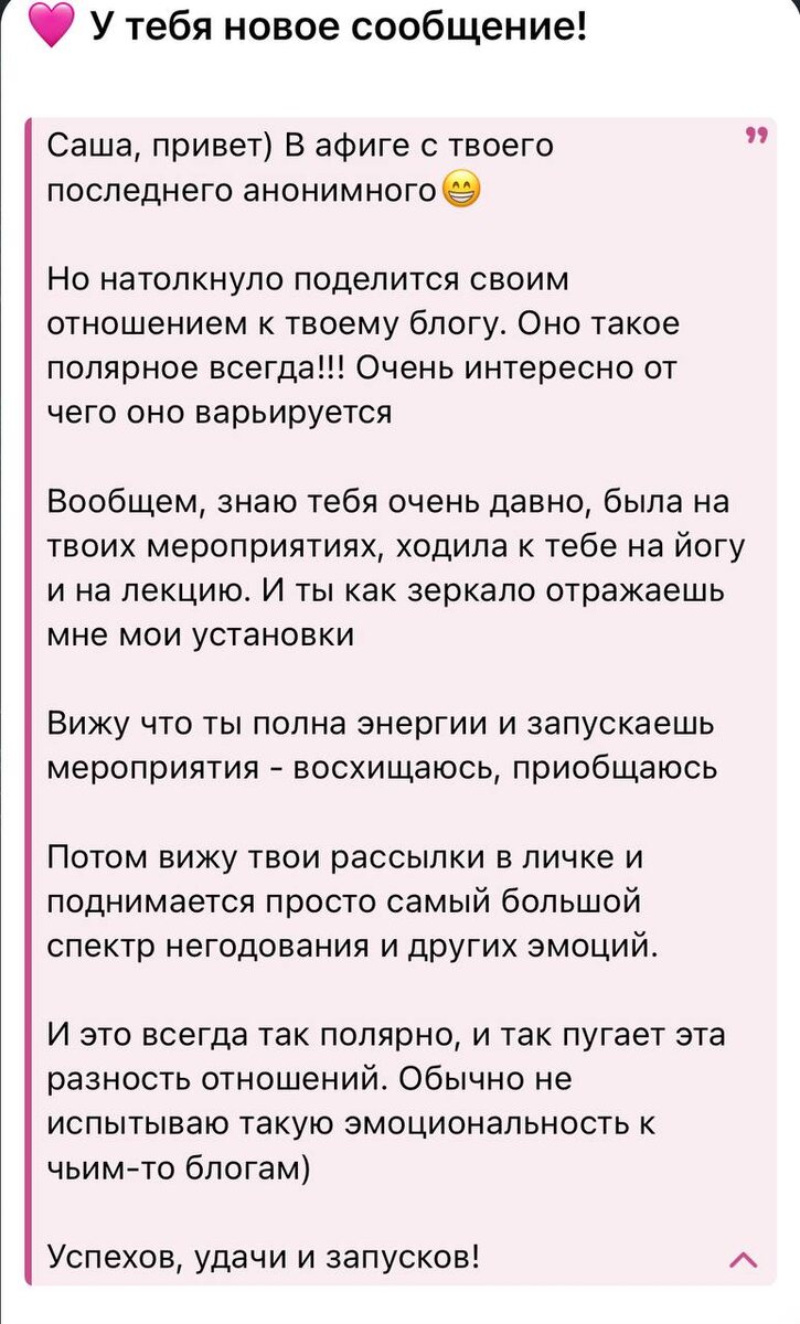 А вот ответ не включенного в треугольник человека ⠀ Как говорится, почувствуйте разницу. ⠀ Игры внутри треугольника — это защита от близости, за которую всегда есть расплата (как эмоциональная, так и материальная) ⠀ В чем разница: ⠀ Заметьте, в этом сообщении автор делится чувствами, в том числе негодованием, говоря о себе, не обесценивая и не обвиняя. (Мотайте на ус). И вот здесь действительно у меня есть возможность услышать конструктивную критику и пойти на встречу в отличие от предыдущей анонимки. ⠀ (Тоже мотайте на ус, применяйте в общении, в близости, если хотите быть услышанной) ⠀ Значит ли это, что с автором первого сообщения что-то не так? ⠀ Нет. Это значит, что он играет в игры и глючит своими проекциями, моя позиция тут «с тобой все ок, обесценивать меня не надо, я в таком контакте не останусь, пока пока!». И игра началась там, где человек терпел, насиловал себя — можно не терпеть и выходить из игры на этом этапе. ⠀ Что касается текущего ответа: Мне искренне жаль, что ин