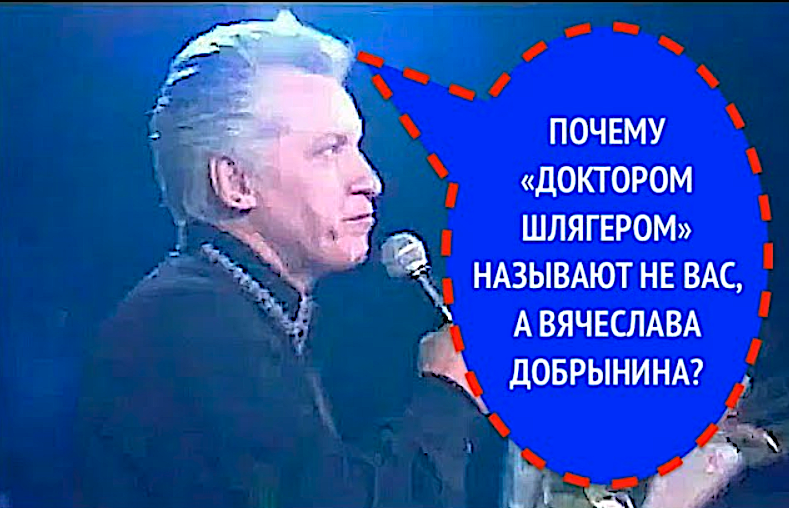 Зритель задает очень тонкий вопрос, который затрагивает профессиональное самолюбие и сравнение с коллегой. Он начинает с признания заслуг Морозова ("столько хитов"), что смягчает остроту дальнейшего. Основной посыл – почему именно Добрынин носит звание "Доктора шлягера", а не Морозов, несмотря на его собственные успехи. Вопрос "Не обидно?" напрямую обращается к