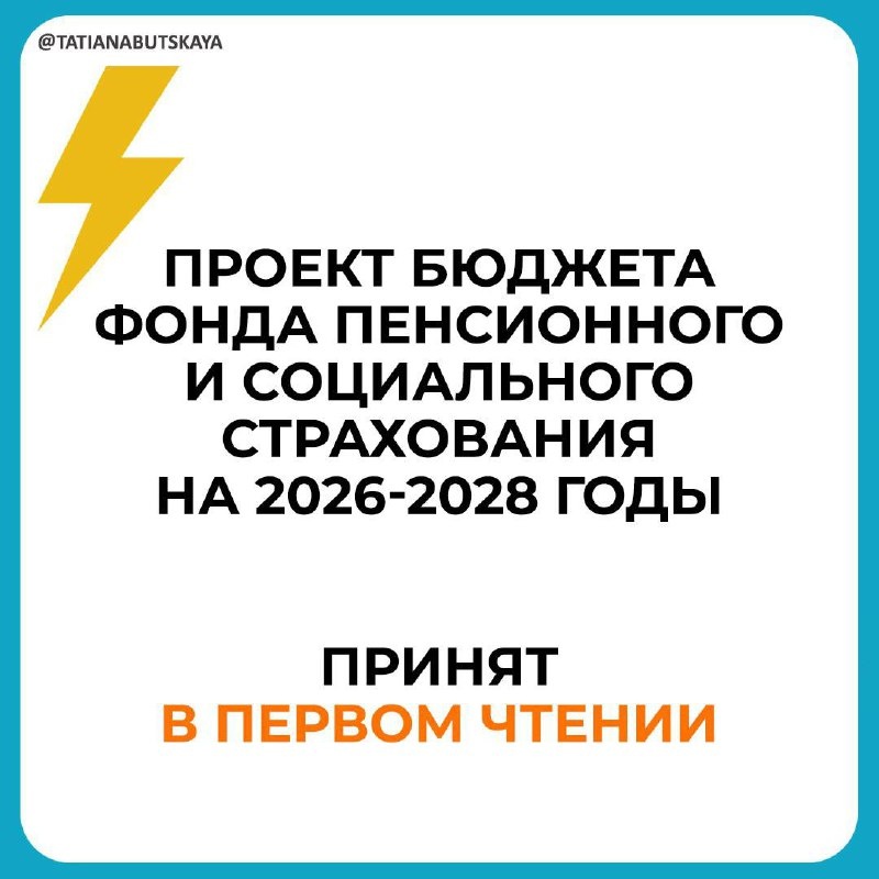 ❗️Проект бюджета Фонда пенсионного и социального страхования на 2026 год и плановый период 2027–2028 годов принят в первом чтении