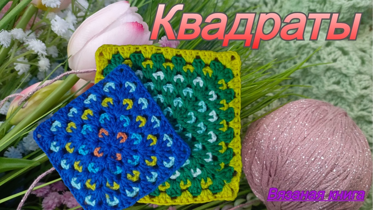 Очень он мне нравится и я постараюсь понятнее объяснить. На самом деле не всё так уж и сложно. Просто в формате статьи могут быть непонятные моменты. Но я очень постараюсь. Квадрат может быть любой величины. Надо запомнить как вяжутся 2 ряда. Итак, как обычно я использую петлю амигуруми. В неё провязываю классический первый ряд. Это 4 группы столбиков с одним накидом и 2 воздушные между ними. Нить не обрезаю. Подтянула её побольше что бы не распустилась. Для следующего ряда нить контрастного цвета надо ввести между столбиками с накидом первого веерка. Обращу внимание - все чётные ряды вяжутся столбиками без накида. Над уголком в чётных рядах вяжу цепочку из трёх воздушных петель. Теперь свяжу 3 воздушные и прикреплюсь соединительной петлёй с первым столбиком без накида. Нить основного цвета ( здесь синяя ) надо вывести с изнанки так, что бы она обхватывала обе дужки. Вывожу её в ту половинку веерка которая была связана в начале ряда. Между первым и вторым столбиком с накидом. Надеюсь