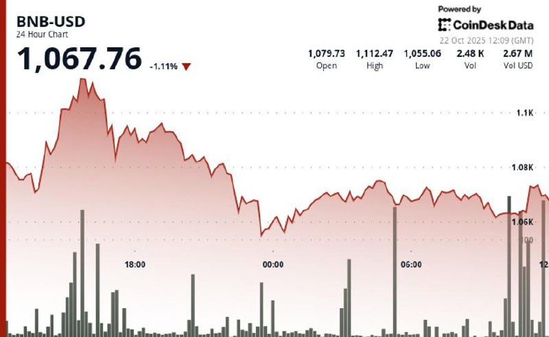 Технически, BNB консолидируется между поддержкой на уровне 1055 долларов и сопротивлением около 1112 долларов, а покупатели пытаются преодолеть давление продаж.