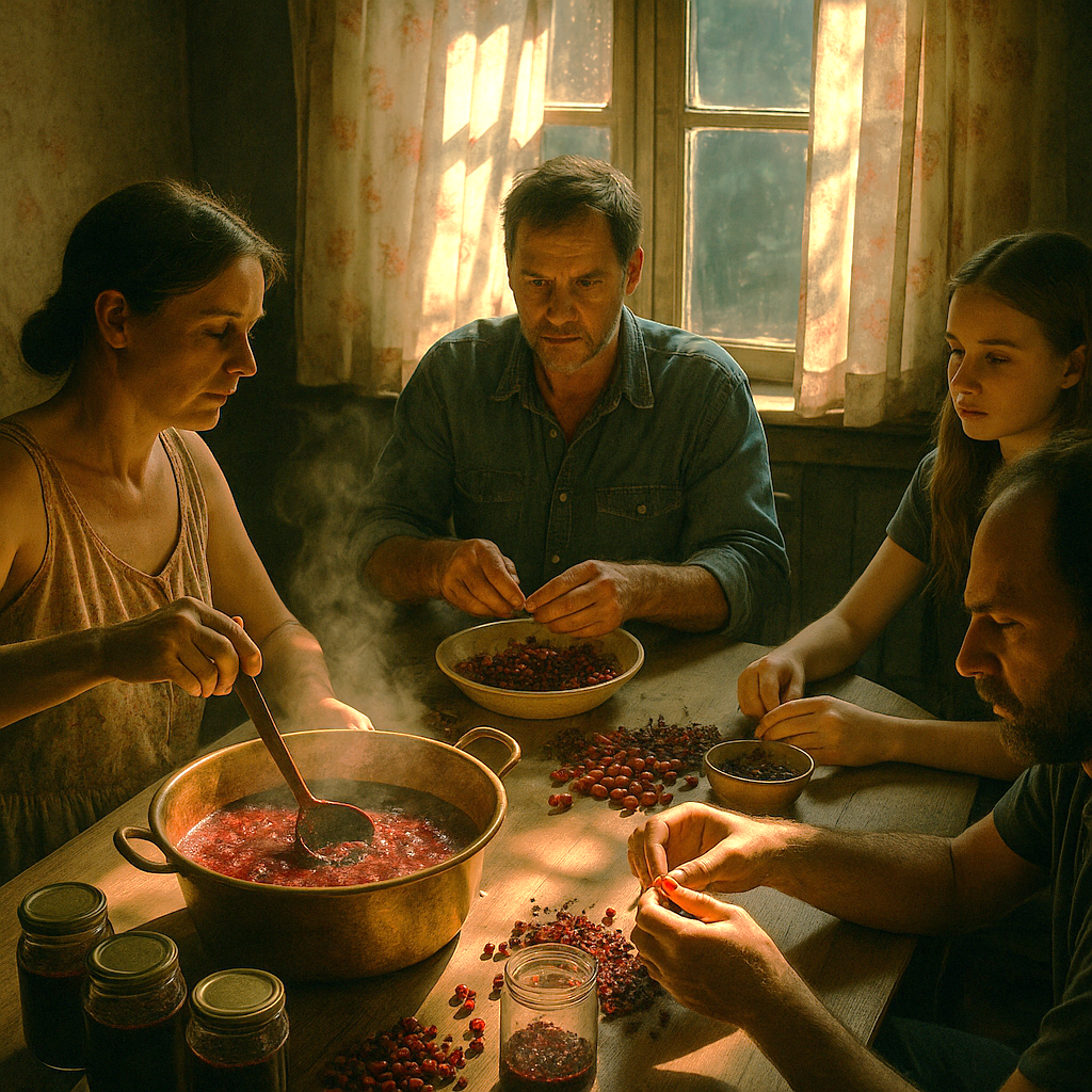 Август кончался. В окно тянуло сырым из леса, хотя днём ещё было жарко. Варенье булькало в медном тазу, густой запах заполнял всю кухню. Я мешала половником медленно, по кругу, смотрела, как пена собирается у краёв.
