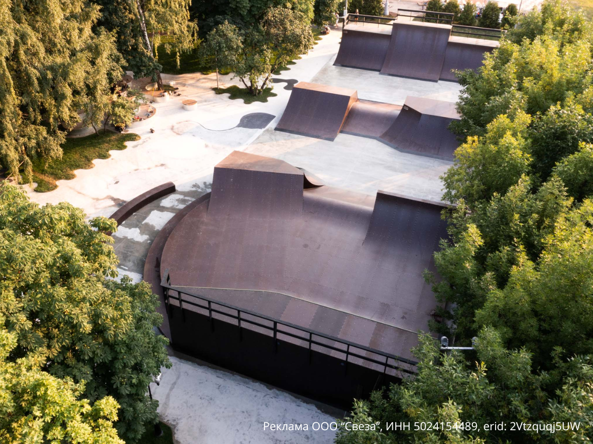 Парк состоит из трех взаимосвязанных зон — такая геометрия позволяет кататься по десяткам разных траекторий. Для местных жителей это эстетичная территория спорта и точка притяжения, расположенная прямо у дома.