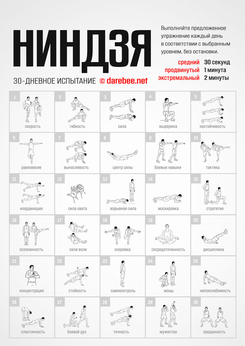 Примите ниндзя-вызов! 30 дней силы и концентрации Прокачайте тело и разум за 30 дней. Каждый день — новая миссия, новое испытание, новый шаг к себе настоящим. Без оборудования, без отговорок — только вы, ваша воля и путь ниндзя. Готовы? Время действовать. https://darebee.net/challenges/ninja-challenge.html #ниндзявызов #darebee #фитнесвызов #тренировканадому #мотивацияспорт #30днейвызова #путьвоина #ментальнаясила #тренируйсякаждыйдень #фитнесмотивация #спортбезотговорок #самодисциплина #внутреннийвоин