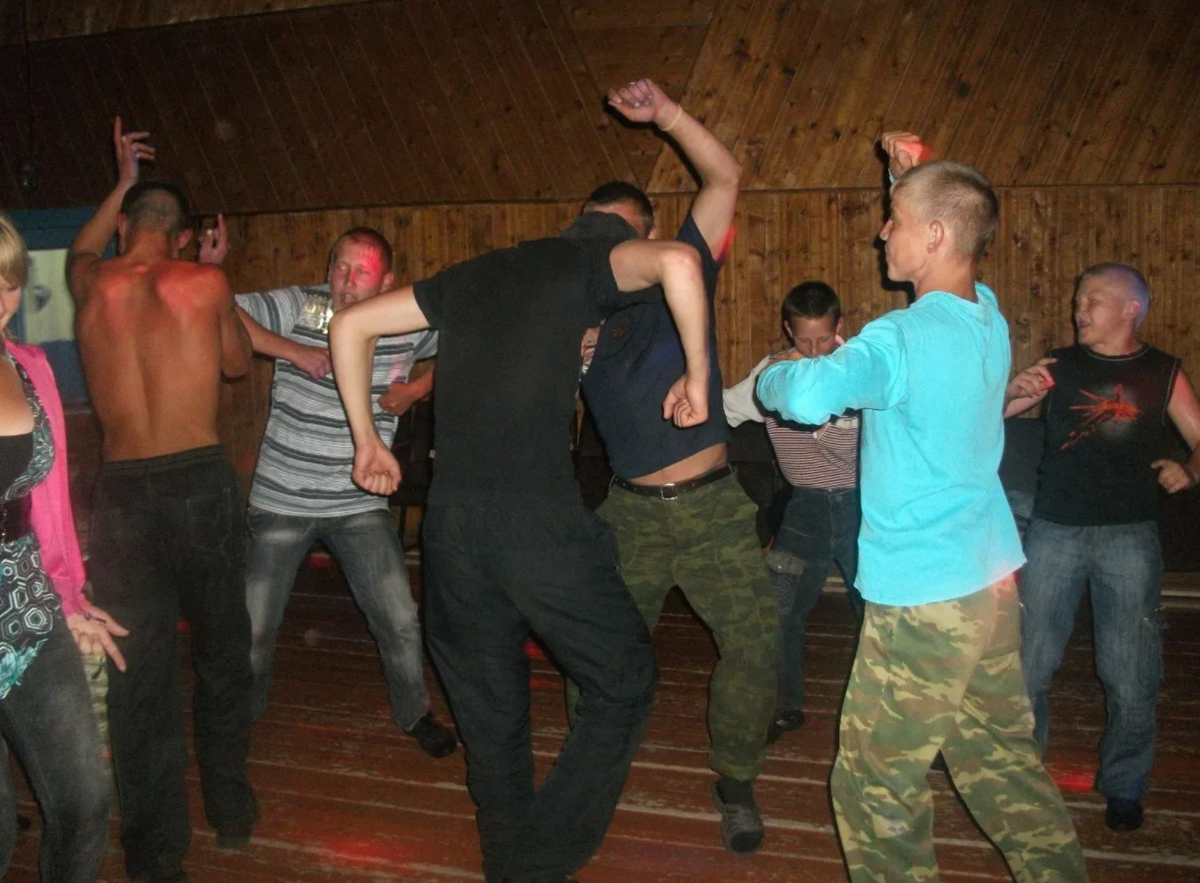 Драка могла начаться и из-за косого взгляда, и из-за случайно пролитого пива, и просто потому что "он из соседней деревни". Межпоселковые разборки - вообще классика жанра.