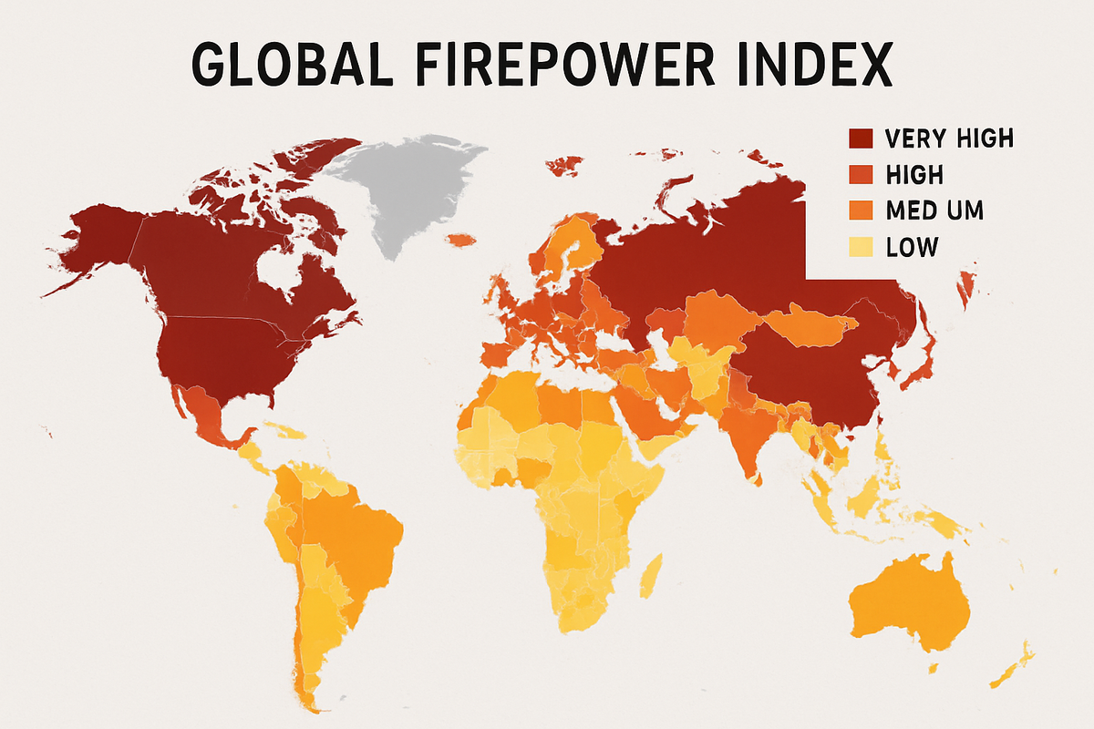 Глобальный индекс огневой мощи (Global Firepower Index, GFI) — это комплексный рейтинг, который оценивает рассчитанную военную силу государств. Этот индекс впервые был разработан в начале 2000-х годов компанией Global Firepower, которая специализируется на аналитике и оценке военных сил по всему миру. В отличие от других рейтингов, он не основывается исключительно на объемах военной техники или расходах на оборону, а включает более широкие и комплексные показатели, позволяющие получить более объективное представление о военной мощи страны.