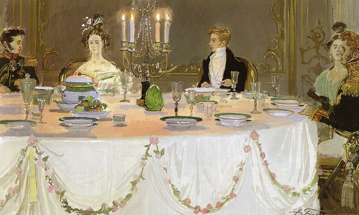 АС Пушкин очень тонко подметил лёгкость, с которой устраивались обеды дворянских домах и усадьбах. После победы над французом в моду по всей Европе вошло всё русское: мода, пища, напитки, даже подача блюд.